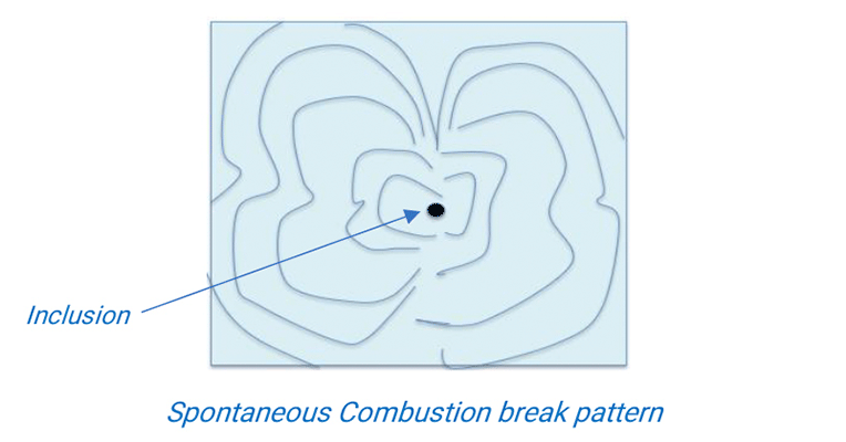 Spontaneous Combustion is the explosion of Toughened glass due to an inclusion, like Nickel Sulphide. These inclusions can exist in the glass from its original raw materials (eg. sand) and gets primed/enlarged during the Toughening process. This can result in the Toughened glass exploding at any future point in time, even years later.