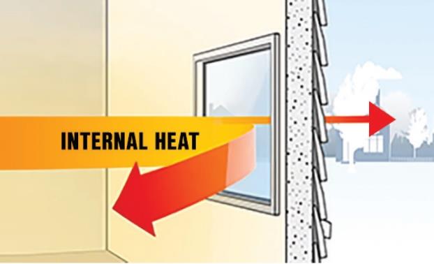 Heat wants to go from where it is hot to where it is not. When it is hot outside, heat derived from the sun wants to come inside – we call this Heat Gain. When it is cold outside, heat from inside our buildings wants to go out – we call this Heat Loss.